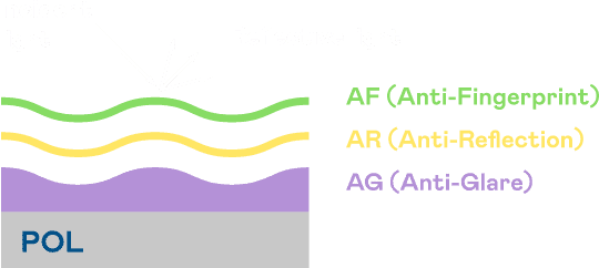 尊龙集团光电发展出独家的表面处理跟多层镀膜技术,,,让外部光线照射到显示器表面时所产生的反射光大幅降低。。。。